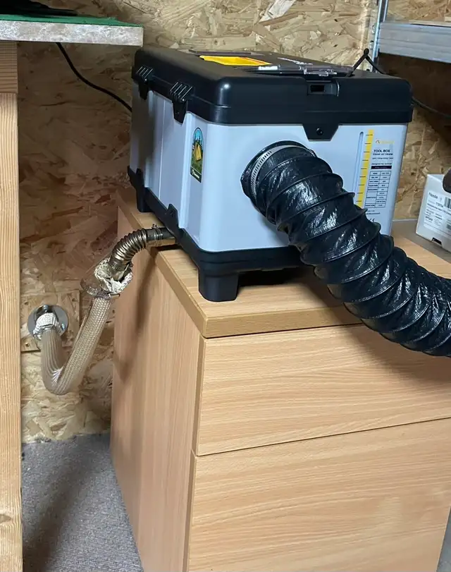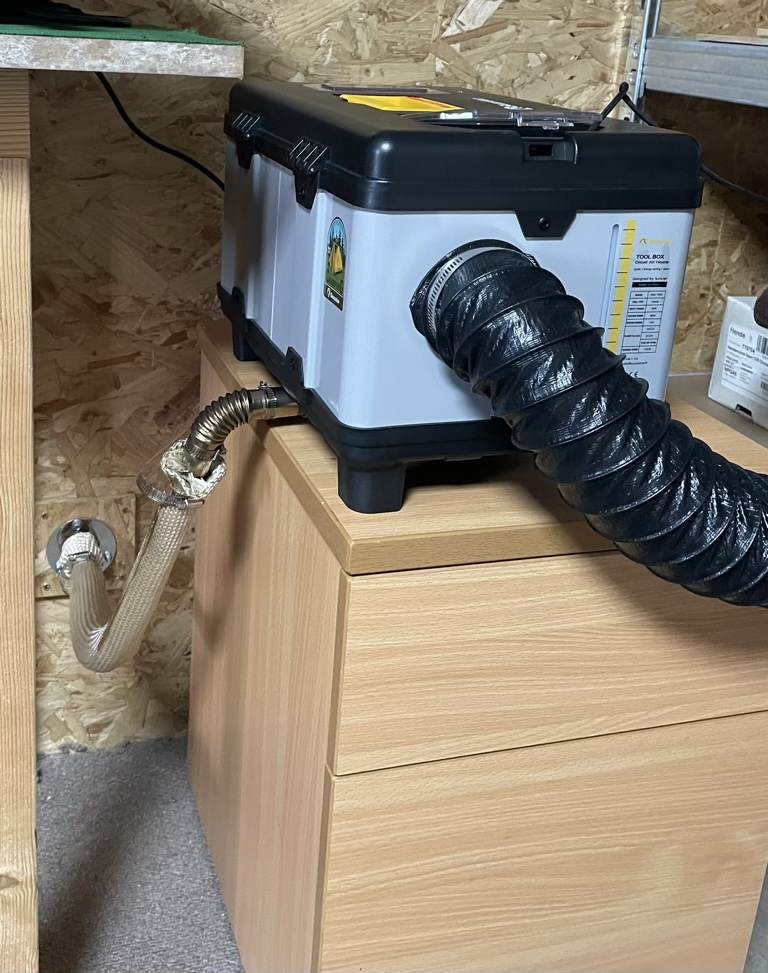 To extend my 'making season' into the colder months I decided to install a Sunster 8KW TB10 Toolbox Diesel Air Heater a few weeks ago. That was a quick trial to check that the heater unit worked as expected, the heating duct was effective, and that the exhaust pipework was safe.
